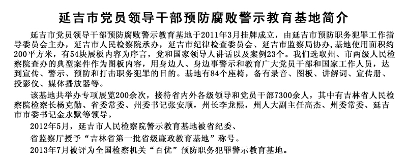 延吉市党员领导干部预防腐败警示教育基地